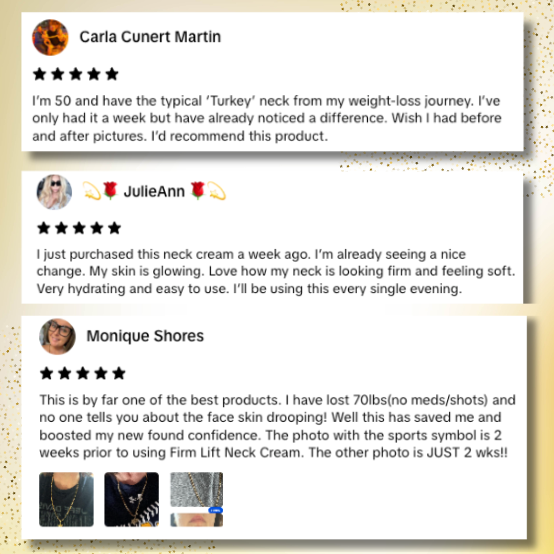 Unlike traditional neck creams that rely solely on collagen or retinol, Naturalift features Acetyl Hexapeptide-8 (AH-8)—a breakthrough peptide that works by relaxing facial muscles to smooth expression lines and wrinkles at the source. While retinol-based creams can take months to show results and often cause irritation, AH-8 delivers visible firmness within days to weeks with a gentle, lightweight feel perfect for sensitive skin. Collagen creams only support firmness indirectly, but our dual-action formula relaxes muscles AND boosts collagen production simultaneously for faster, more dramatic results without the heavy, greasy texture.